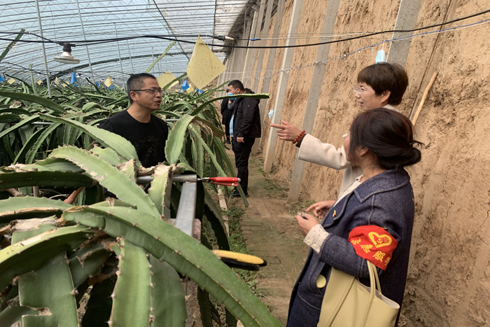 在莊頭鎮(zhèn)永內村現(xiàn)代農業(yè)園區(qū),甘蔗、火龍果長勢喜人。負責人趙振杰愛農、助農、敢為人先,通過考察、學習,打破了農作物地域限制,將南方的水果種在了澄城大地上。他種植了渭南唯一溫室甘蔗林,黑、青皮兩種品種相間種植,剛走進棚內,就感受到一陣濕熱,猶如親臨南方一般,映入眼簾的是一節(jié)一節(jié)成熟的甘蔗,看上去一片碧綠?,F(xiàn)種植的火龍果種植技術已成熟,已發(fā)展4個棚,采收期從6月到次年2月底,銷售額大概在18萬元左右。