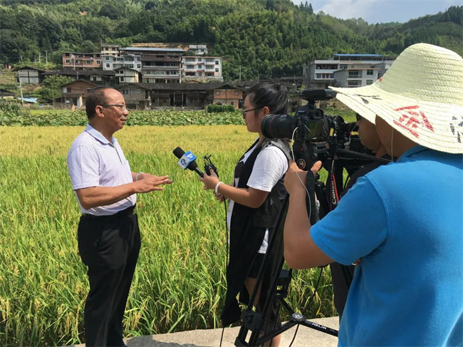 謝華安院士(左一)在福建尤溪縣接受媒體采訪(fǎng)