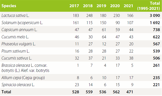 表6 2017-2021年申請(qǐng)量前10的蔬菜種類
