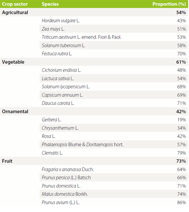表9說明,水果品種一般保持較長的保護(hù)期,在在不同的作物領(lǐng)域,情況因品種而異。造成這種現(xiàn)象的原因可能有很多,如消費(fèi)者偏好的變化、育種趨勢、育種活動(dòng)強(qiáng)度的差異、開發(fā)新品種所需的時(shí)間和費(fèi)用或近期植物育種的熱潮等等。