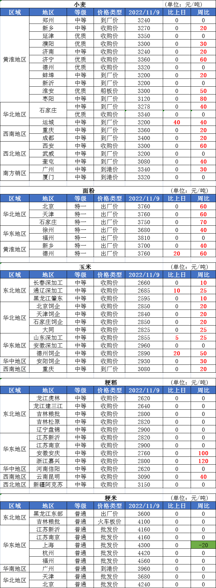 1、11月9日,新疆臨儲小麥拍賣共投放39843噸,全部成交。其中白小麥8905噸,成交均價3079元/噸;高寒白小麥18238噸,成交均價2855元/噸;混合麥12700噸,成交均價3042元/噸。