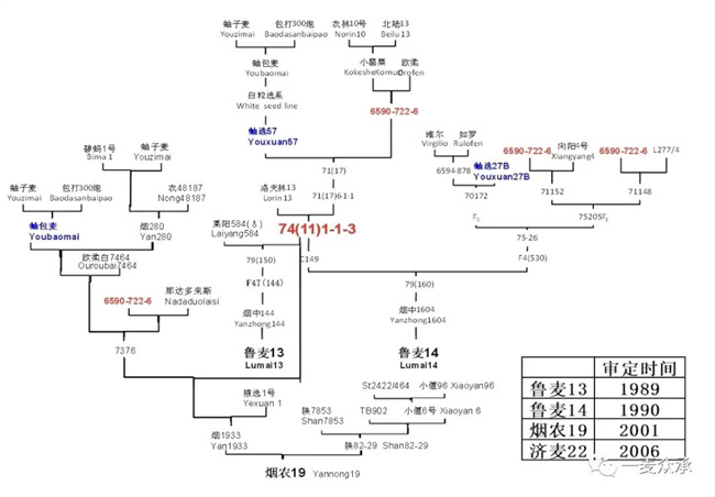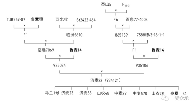 圖2 濟(jì)麥22系譜圖(劉建軍研究員,郭軍博士2022-4-27值日文章)