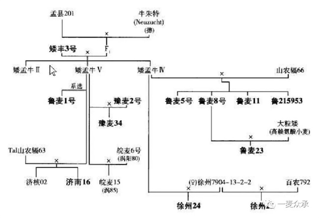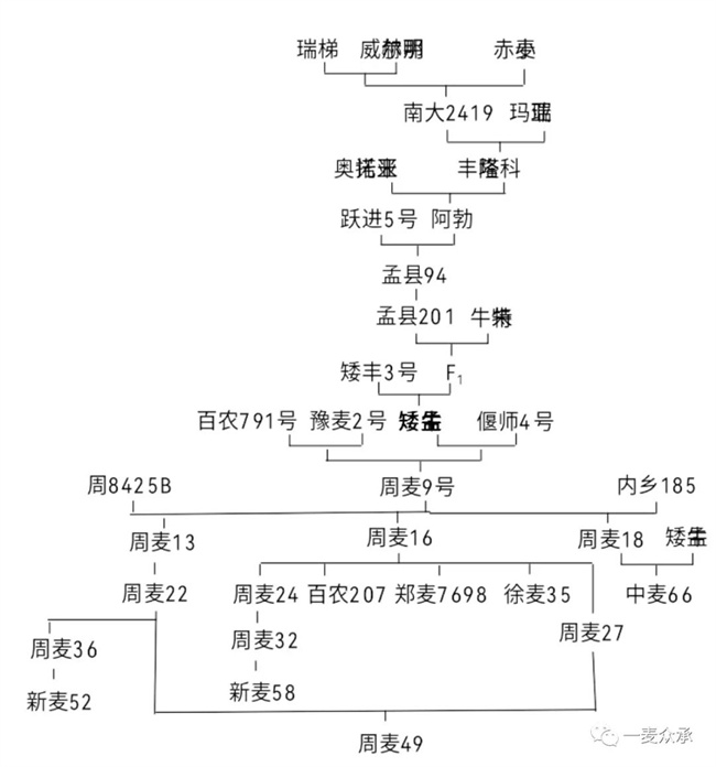 圖5 矮孟牛在部分河南小麥品種中的系譜圖