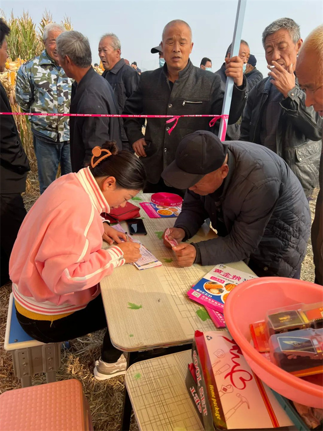 2022年11月7日,黃金糧MY73菏澤區(qū)域觀摩測產(chǎn)會(huì)在鄄城縣閆什鎮(zhèn)成功召開!菏澤區(qū)域經(jīng)銷商及種地大戶到場觀摩人數(shù)600余人,現(xiàn)場量地實(shí)打測產(chǎn),黃金糧MY73折合14%標(biāo)準(zhǔn)水分畝產(chǎn)1913.15斤/畝!到場經(jīng)銷商和種地大戶紛紛驚嘆于黃金糧MY73“小棒子、大產(chǎn)量”的優(yōu)勢!現(xiàn)場預(yù)定量超過11000畝!