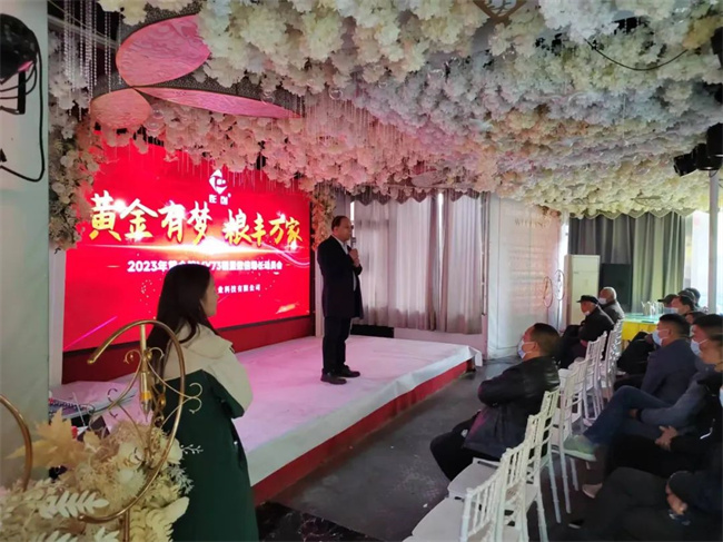 室內(nèi)會(huì)議中河南省豫玉種業(yè)股份有限公司彭總致歡迎詞,河南省彭創(chuàng)農(nóng)業(yè)科技有限公司楊總就當(dāng)前種業(yè)形勢、公司發(fā)展、黃金糧MY73產(chǎn)品特點(diǎn)及推廣意義等方面進(jìn)行了詳細(xì)講解!進(jìn)一步指出,通過黃金糧MY73的四年市場推廣,已經(jīng)從冉冉升起的種業(yè)新星發(fā)展為引領(lǐng)潮流的種業(yè)龍頭!