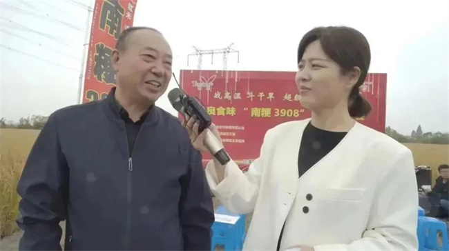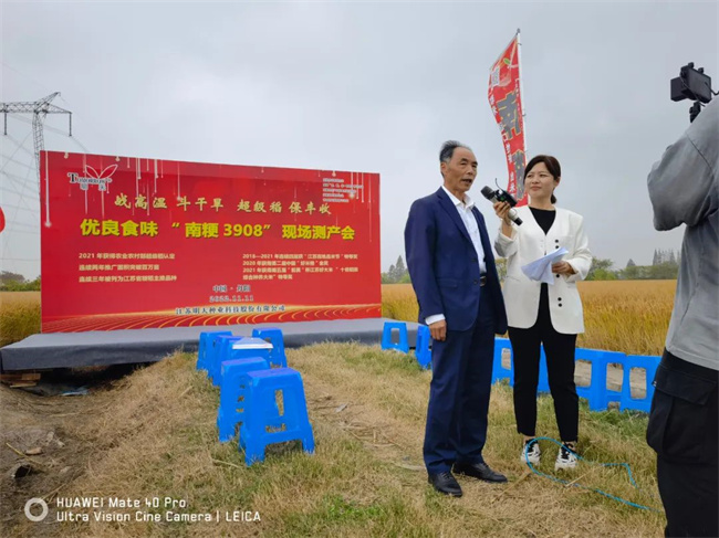 利用測產(chǎn)收割間隙,記者隨機(jī)采訪南粳3908的種植戶、經(jīng)銷商和農(nóng)技專家,來聽聽他們怎么說。“我是南粳3908種植戶史鎖虎, 南粳3908我從2019年開始種植四年,正常產(chǎn)量水平在1500斤/畝,高產(chǎn)年份畝產(chǎn)達(dá)到1600斤以上,對今年特殊氣候條件下的長勢長相非常滿意。”“我是南粳3908丹陽市代理商周平,我們丹陽水稻面積約45萬畝,南粳3908種植面積已達(dá)15萬畝,品種產(chǎn)量高、穩(wěn)產(chǎn)性好、抗逆性強(qiáng)、米質(zhì)優(yōu)、抗病抗倒已經(jīng)深入種植戶人心。”原丹陽市作栽站站長周銘成接受記著采訪時(shí)說道:南粳3908是個(gè)非常好的品種,通過良種良法配套,繼續(xù)挖掘產(chǎn)量潛能,充分發(fā)揮優(yōu)良品種優(yōu)勢。