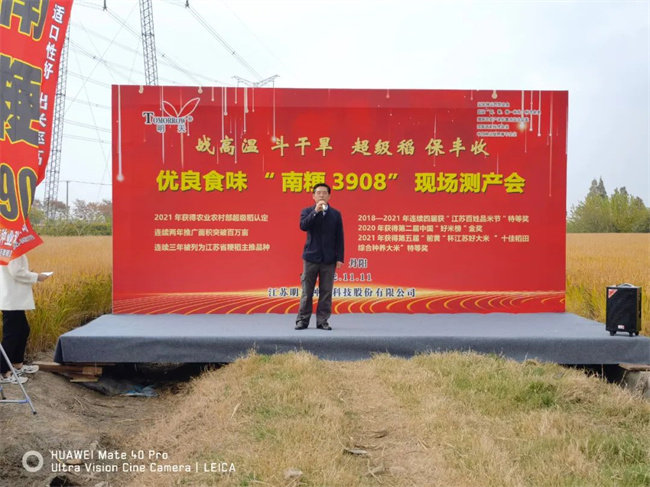 江蘇明天種業(yè)科技股份有限公司總經(jīng)理嚴(yán)輝民分享南粳3908品種推廣經(jīng)驗(yàn)說道:在公司戰(zhàn)略規(guī)劃的四大板塊中,常規(guī)稻麥既是公司穩(wěn)定發(fā)展的優(yōu)勢板塊,銷售區(qū)域也是公司經(jīng)營的核心市場。近幾年來,在各級(jí)領(lǐng)導(dǎo)專家的關(guān)心支持下,在合作伙伴們的緊密協(xié)作中,通過千萬大戶的口口相傳,我們成功打造出優(yōu)質(zhì)軟米超級(jí)稻南粳3908。南粳3908是江蘇明天種業(yè)和江蘇省農(nóng)科院王才林研究員團(tuán)隊(duì)聯(lián)合選育的優(yōu)質(zhì)軟米粳稻品種,分別通過安徽、浙江引種認(rèn)定,其高產(chǎn)優(yōu)質(zhì)、抗逆廣適的特點(diǎn)深受大戶的喜愛。2021年獲得農(nóng)業(yè)農(nóng)村部超級(jí)稻認(rèn)定,連續(xù)三年被列為江蘇省早熟晚粳主推品種,是蘇州市、丹陽市等地水稻良補(bǔ)主推品種,2021—2022年連續(xù)兩年推廣種植面積突破百萬畝。