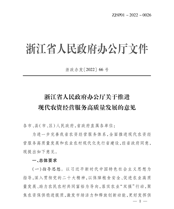 日前,為進一步完善浙江省農(nóng)資經(jīng)營服務體系,全面推進現(xiàn)代農(nóng)資經(jīng)營服務高質(zhì)量發(fā)展和農(nóng)業(yè)農(nóng)村現(xiàn)代化先行省建設,經(jīng)省政府同意,省政府辦公廳出臺《浙江省人民政府辦公廳關于推進現(xiàn)代農(nóng)資經(jīng)營服務高質(zhì)量發(fā)展的意見》(以下簡稱《意見》)。