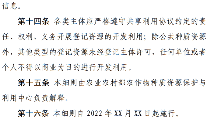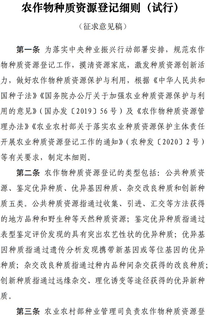 關(guān)于《農(nóng)作物種質(zhì)資源登記細則(試行)(征求意見稿)》公開征求意見的通知