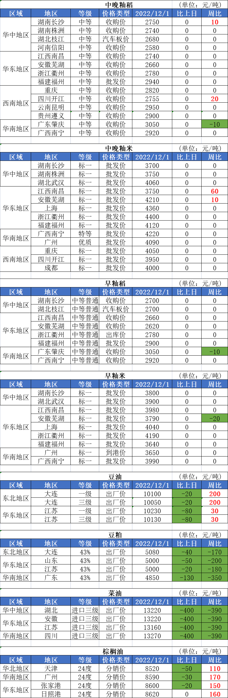 3、截至11月25日,主產(chǎn)區(qū)各類糧食企業(yè)累計(jì)收購(gòu)秋糧6344萬(wàn)噸,同比增加12.1%,其中中晚秈稻收購(gòu)1879萬(wàn)噸,粳稻收購(gòu)1436萬(wàn)噸。
