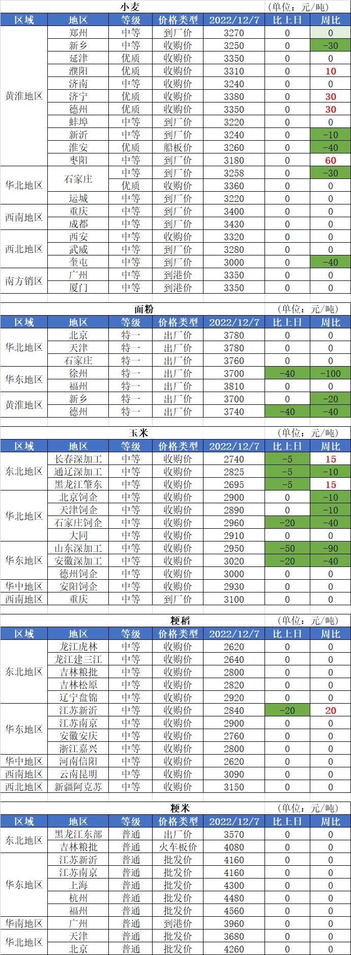 1、12月7日,新疆臨儲(chǔ)小麥拍賣共投放40903噸,全部成交。其中白小麥37720噸,成交均價(jià)2929元/噸;紅小麥3183噸,成交均價(jià)2893元/噸。
