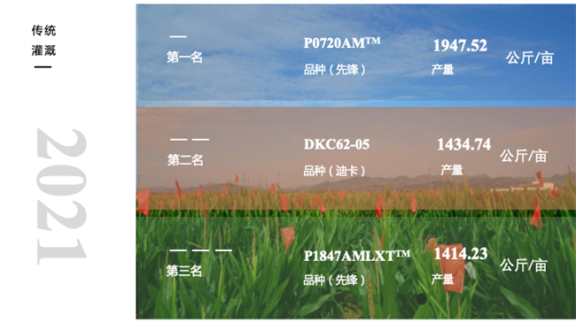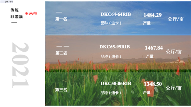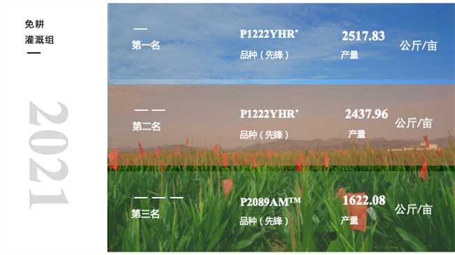 12月15日,美國(guó) 2021 年玉米高產(chǎn)競(jìng)賽(NCYC)結(jié)果公布,最高產(chǎn)量為 2517 公斤/畝,使用品種為先鋒公司的 P1222YHR。