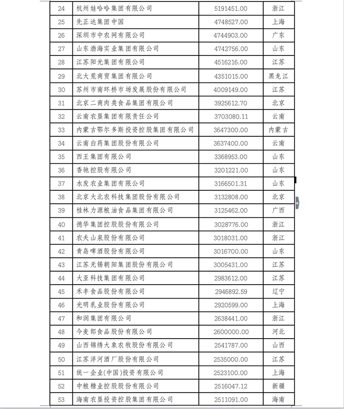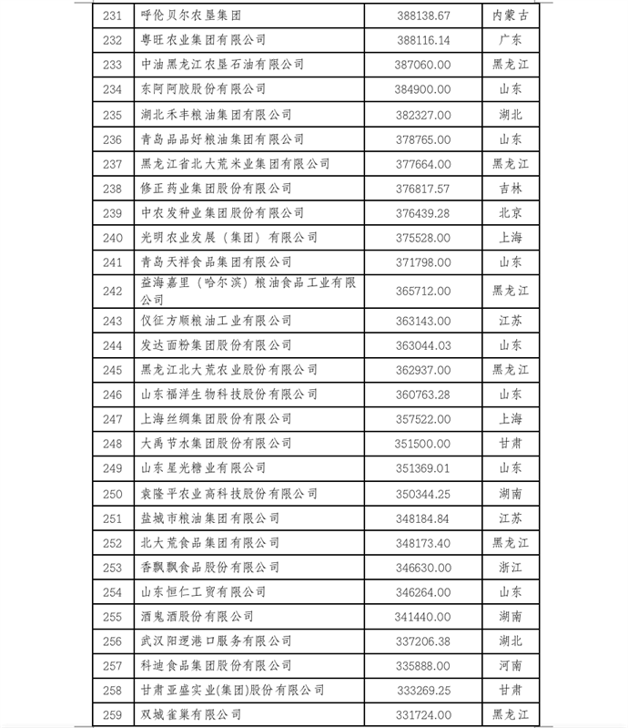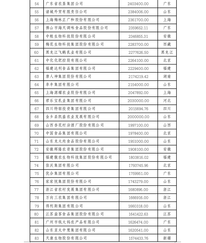 本活動參照國際通行評價辦法,由企業(yè)按照要求進行申報或采用公開數(shù)據(jù),參考利潤和企業(yè)信譽等數(shù)據(jù),依據(jù)2021年農(nóng)業(yè)企業(yè)營業(yè)收入排序產(chǎn)生,現(xiàn)予公示。