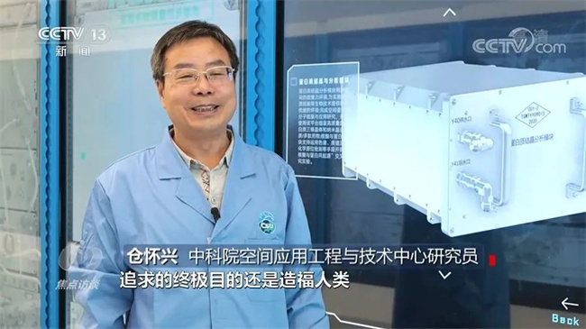 倉懷興:“大家知道人的骨骼受到損傷,或者是缺損以后,過去咱們用不銹鋼來修補骨骼,后來用鈦合金,現(xiàn)在發(fā)展到新一代用可降解的,甚至是3D打印的仿生材料。我們把這些物質(zhì)拿到天上去,在天上能夠制備出這種仿生的可降解的骨骼修復產(chǎn)品,這種產(chǎn)品植入到體內(nèi)以后,人慢慢會把它降解吸收,然后再利用人自身的修復能力長出新的、屬于自己的骨骼組織。”