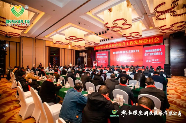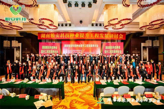 歲末年底同歡慶,幸福前程步步高。12月25日“湖南糧安科技種業(yè)提升工程發(fā)展研討會(huì)”在湖南長(zhǎng)沙隆重舉行。本屆大會(huì)由湖南糧安科技主辦,湖南農(nóng)業(yè)大學(xué)技術(shù)支持,廣西綠海種業(yè)、廣東粵良種業(yè)、上海天谷生物、廣東鮮美種苗聯(lián)合協(xié)辦。來(lái)自湖南農(nóng)業(yè)大學(xué)、上海市農(nóng)業(yè)生物基因中心等農(nóng)業(yè)科研院校單位專(zhuān)家,全國(guó)多家種業(yè)、米業(yè)、酒業(yè)公司負(fù)責(zé)人,華南稻區(qū)種子核心經(jīng)銷(xiāo)商代表以及南方農(nóng)村報(bào)農(nóng)財(cái)寶典、種業(yè)商務(wù)網(wǎng)、種子快訊雜志社多家媒體代表近200人參加了本次研討會(huì)。