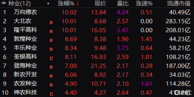 近期得益于利好整政策催化,種業(yè)概念股漲勢(shì)良好。大北農(nóng)、萬向德農(nóng)、隆平高科、敦煌種業(yè)等都有過漲停表現(xiàn)。
