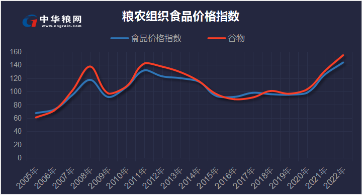 1月6日,聯(lián)合國糧農(nóng)組織披露的數(shù)據(jù)顯示,2022年糧農(nóng)組織谷物價格指數(shù)創(chuàng)154.7點,同比上漲17.9%,突破2011年前高,創(chuàng)歷史新高。其中,2022年世界玉米和小麥價格雙雙創(chuàng)歷史新高,分別較2021年平均價格上漲24.8%和15.6%,同時大米出口價格平均同比上漲2.9%。