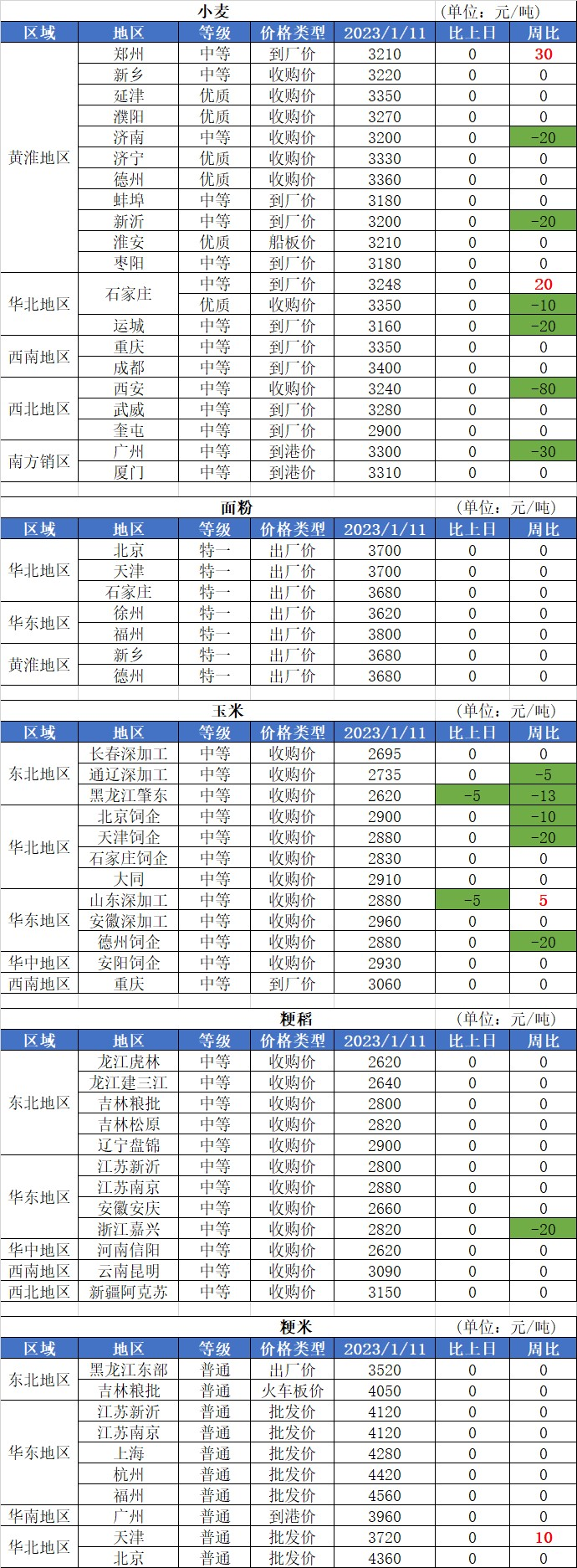 1、1月11日,最低收購價小麥拍賣共投放102877噸,全部成交。其中河南混合麥81034噸,成交均價2954元/噸;安徽混合麥21843噸,成交均價2988元/噸。