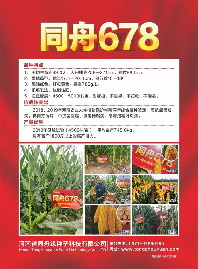 5、適宜密度:4200-4500株/畝,耐密植,不空棵,不花粒,不倒翁。