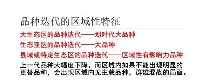 目前幾大區(qū)域的品種換代情況主要是: