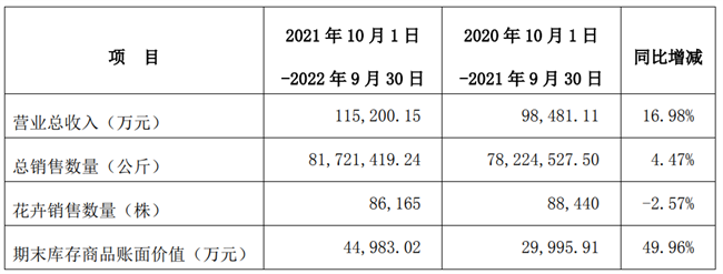 據(jù)登海種業(yè)2021-2022業(yè)務(wù)年度經(jīng)營情況報告顯示,公司2022年營收總收入為11.52億元,同比2021年的9.8億元增長了16.98%。