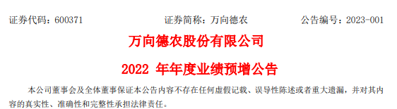 萬向德農(nóng)2022年年度業(yè)績預(yù)增公告顯示(本次預(yù)計業(yè)績未經(jīng)注冊會計師審計):