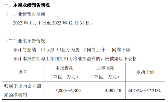 2022年凈利潤5800-6300萬,較上年同期增長50%左右