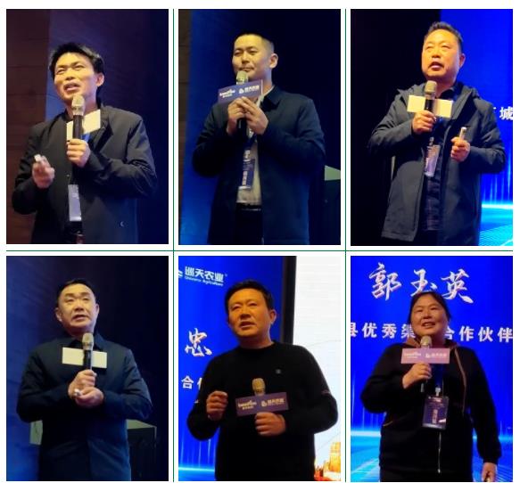 ▲優(yōu)秀縣級合作伙伴睢縣王德亮(一排左一)、尉氏李新志(一排中)、柘城李海河(一排右一)和太康萬新衛(wèi)(二排左一),優(yōu)秀鄉(xiāng)鎮(zhèn)渠道商商丘楊節(jié)忠(二排中)、睢縣郭玉英(二排右一)做經(jīng)驗分享