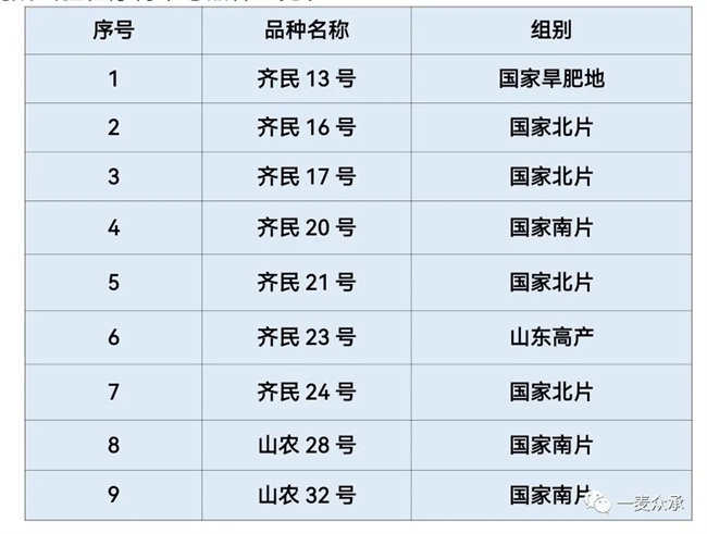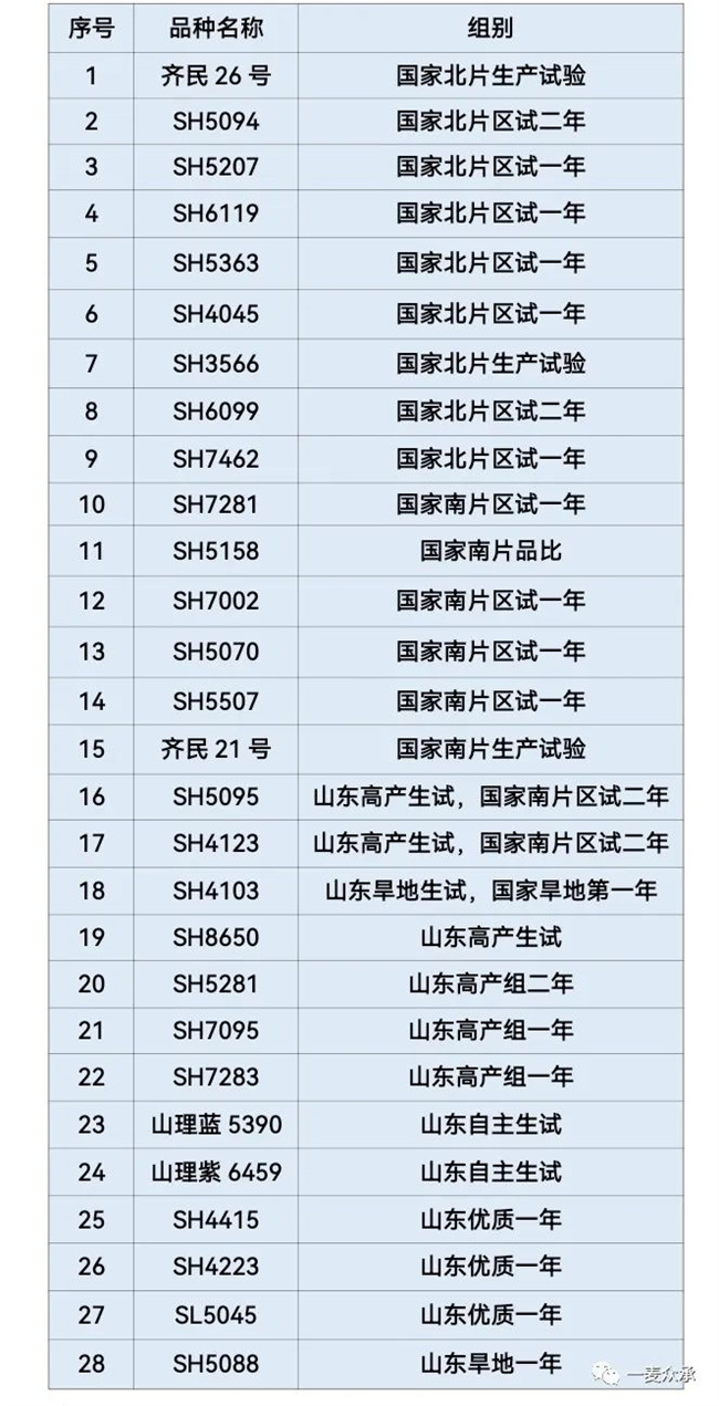 完成試驗(yàn)程序待下號(hào)品種一覽表: