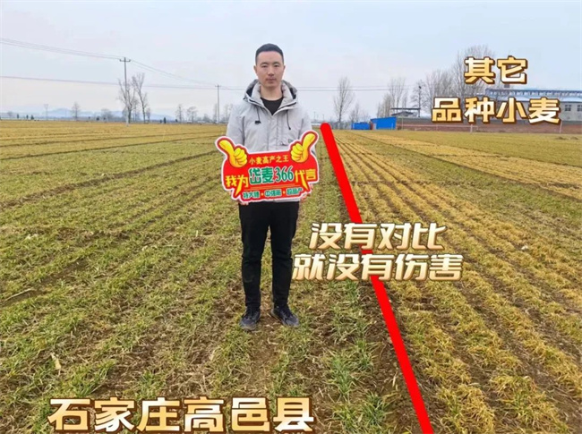 各位參會伙伴來到岱麥366苗期觀摩田,一眼望去,岱麥366與左右相鄰兩地塊的麥苗形成鮮明對比。岱麥366葉片濃綠,苗齊苗壯,根系發(fā)達,無任何凍害現(xiàn)象發(fā)生,而相鄰兩塊麥田均出現(xiàn)不同程度的干尖黃葉,任何小麥品種,只有保證苗期植株健壯,無凍害病害的發(fā)生,豐收才有保障。