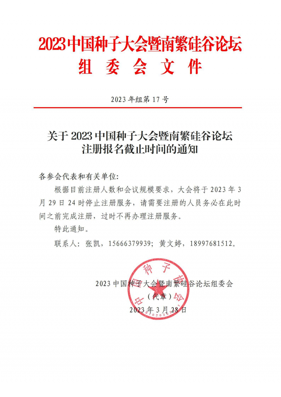 關(guān)于2023中國(guó)種子大會(huì)暨南繁硅谷論壇注冊(cè)報(bào)名截止時(shí)間的通知