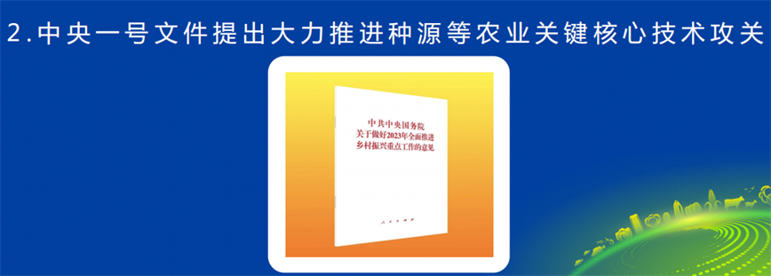 4月1日,2023中國種子大會(huì)暨南繁硅谷論壇在海南三亞舉行,會(huì)上發(fā)布“2022年中國種業(yè)十件大事”,中央一號文件提出大力推進(jìn)種源等農(nóng)業(yè)關(guān)鍵核心技術(shù)攻關(guān)等事件入選。