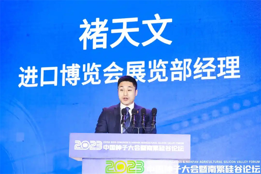 會(huì)上,進(jìn)口博覽會(huì)展覽部經(jīng)理褚天文作第六屆中國國際進(jìn)口博覽會(huì)農(nóng)業(yè)與食品展區(qū)農(nóng)作物種業(yè)專區(qū)推介。會(huì)上,中國種子協(xié)會(huì)副會(huì)長兼秘書長蔣協(xié)新作《中國種子大會(huì)回顧與展望》報(bào)告。