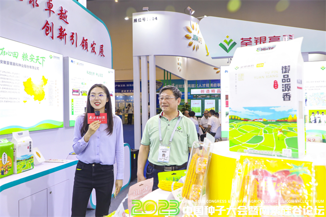 安徽荃銀高科種業(yè)股份有限公司副總經理朱全貴介紹,荃銀高科涉獵水稻、玉米、小麥等多個領域,目前荃優(yōu)系列、荃兩優(yōu)系列等都是主推的水稻品種,“展位上穩(wěn)產、優(yōu)質、高產等水稻品種,都只是我們的冰山一角,還有好多沒展出的。”朱全貴如數(shù)家珍,一一介紹。“從普通玉米,到高質量淀粉玉米,再到高淀粉玉米、鮮食玉米,在玉米產業(yè)鏈上,我們是比較健全的。”