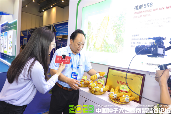 廣西萬川種業(yè)有限公司(以下簡稱“萬川種業(yè)”)現(xiàn)場展示了水稻、玉米、蔬菜的部分品種。萬川種業(yè)總經理吳全清介紹,“銳玉926”玉米品種通過國家審定,具備抗性強、保綠度高、籽粒飽滿且排列整齊等優(yōu)勢,“桂單”系列玉米品種豐產性好,抗病強且飽滿度高,可用來做畜禽飼料。“‘桂單558’玉米品種即將通過國家審定,預計在海南、廣東、廣西、福建、貴州、云南低熱河谷等地區(qū)推廣”。吳全清表示,作為一家集“育、繁、推,科、工、貿”于一體的種業(yè)公司,萬川種業(yè)將利用自身優(yōu)勢,進一步助推中國種業(yè)高質量發(fā)展。