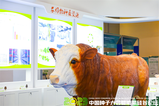 在農業(yè)種質資源保護利用成果展的展位上,驚現(xiàn)一頭“華西牛”,它以模型:實物1:1的比例呈現(xiàn)在觀眾面前,引來一群嘉賓圍觀并合照。