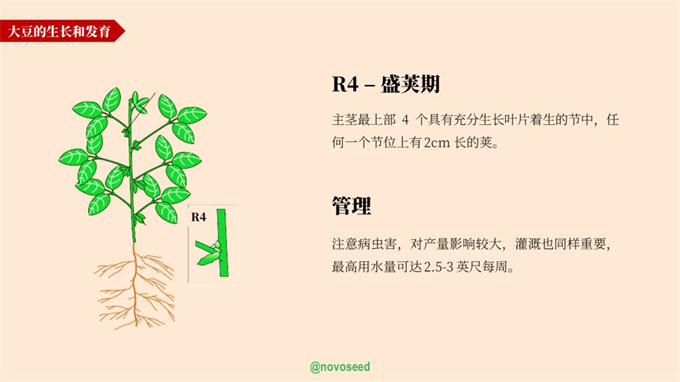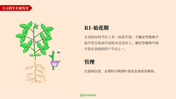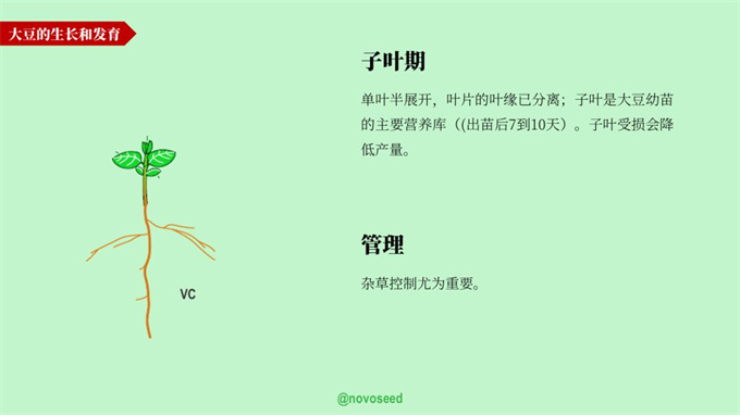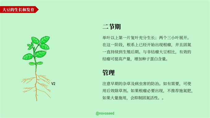 從出苗到花芽分化前為幼苗期。出苗后 2 片子葉展開,其幼莖繼續(xù)伸長,上面的 2 片對生的單葉隨即展開,此時稱單葉期。隨著幼莖不斷伸長,長出第一片復葉時稱 3 葉期。3 葉期地上部分增長速度較慢,地下根系生長較快形成根瘤。此期末根系初步形成,開始需要較多的水分和養(yǎng)料。幼苗期大約 20-25d,占整個生育期的 1/5,這一時期是長根期;應注意蹲苗,加強田間管理,達到苗全、苗勻、苗壯,為豐產(chǎn)打下基礎。