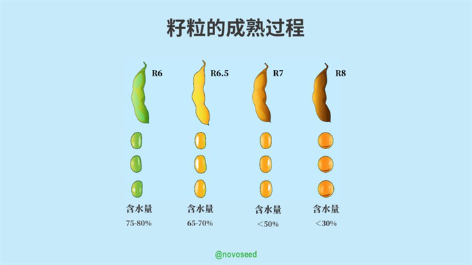 從豆英內豆粒開始膨大起,直到最大的體積和重量時止稱鼓粒期。開花后10d內,種子內的干物質積累增加緩慢,之后的7d增加很快,大部分干物質是在這以后大約21d內積累的。鼓粒期約30—40d。鼓粒完成時的種于含水量約90%。鼓粒期是大豆種子形成的重要時期,此時大豆生育是否正常將決定每英粒數(shù)的多少、粒重的高低和種子化學成分。此時干旱或多雨致澇能造成死英、秕粒、粒重下降而嚴重影響產(chǎn)量。保證種了正常發(fā)育要滿足兩個條件:①植株本身貯藏物質豐富,根系不衰老,葉片的同化作用旺盛;②要有充足的水分供應。