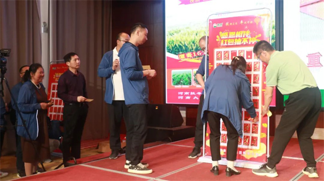 技豐種業(yè)集團(tuán)副總丁明磊宣讀了漯麥163市場維權(quán)公告,發(fā)布了2023年營銷政策。在熱烈氣氛中,會議最后還進(jìn)行了抽獎(jiǎng)樂翻天的簽單抽獎(jiǎng)活動。