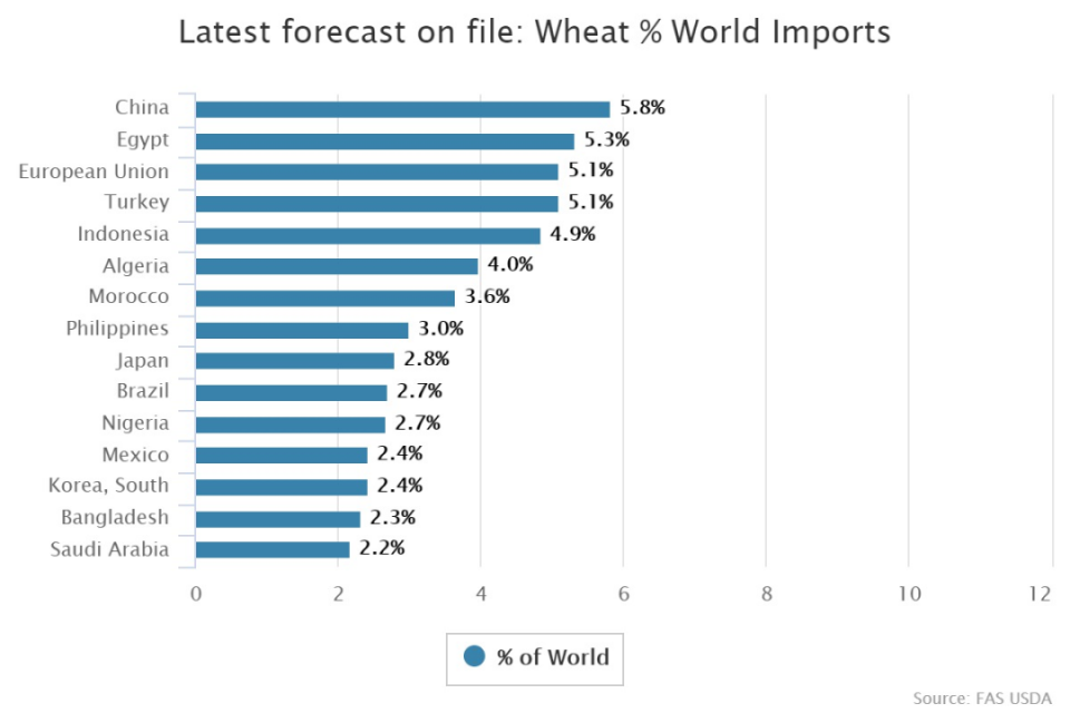 土耳其和歐盟將并列世界第二大小麥進(jìn)口國(guó),進(jìn)口量預(yù)計(jì)為1050萬(wàn)噸;印尼排名第四,進(jìn)口量預(yù)計(jì)達(dá)到1000萬(wàn)噸。