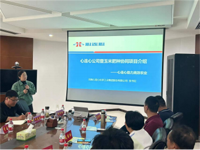 室內(nèi)會議由金海種業(yè)王文霄主持,心連心集團復(fù)合肥農(nóng)技研究處處長張書紅給參會客戶系統(tǒng)講解了心連心玉米肥項目,通過種肥協(xié)同,良法配套,實現(xiàn)玉米增效。
