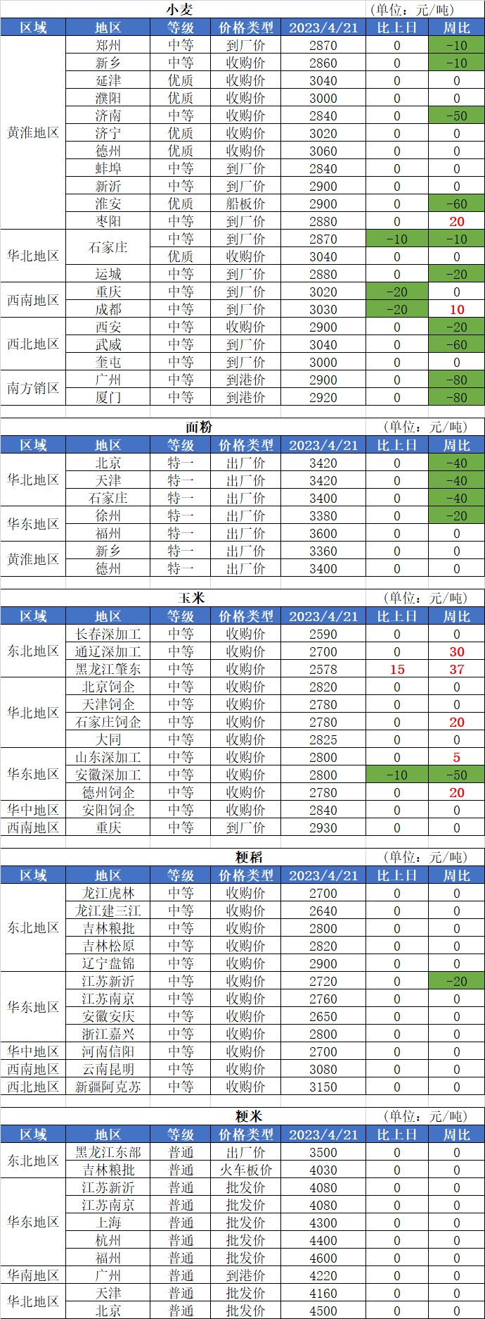 1、4月21日小麥收購(gòu)價(jià)格繼續(xù)下跌,跌幅在0.5-1.0分,調(diào)整后收購(gòu)均價(jià)為1.444元/斤,相較昨日平均收購(gòu)價(jià)下降2厘。
