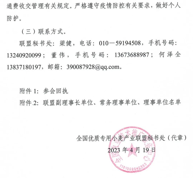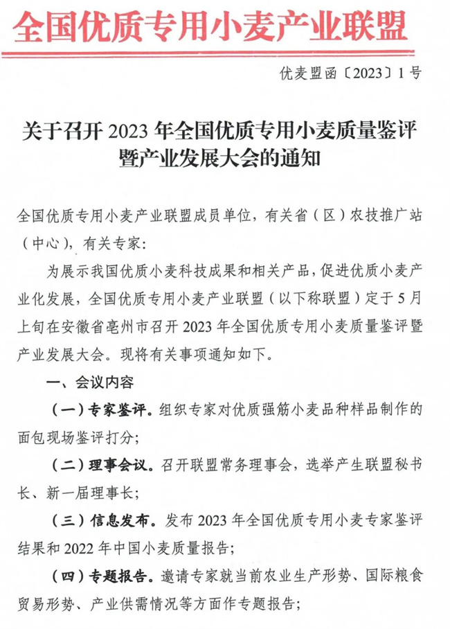 關于召開2023年全國優(yōu)質(zhì)專用小麥質(zhì)量鑒評暨產(chǎn)業(yè)發(fā)展大會的通知
