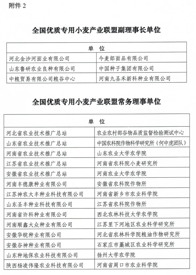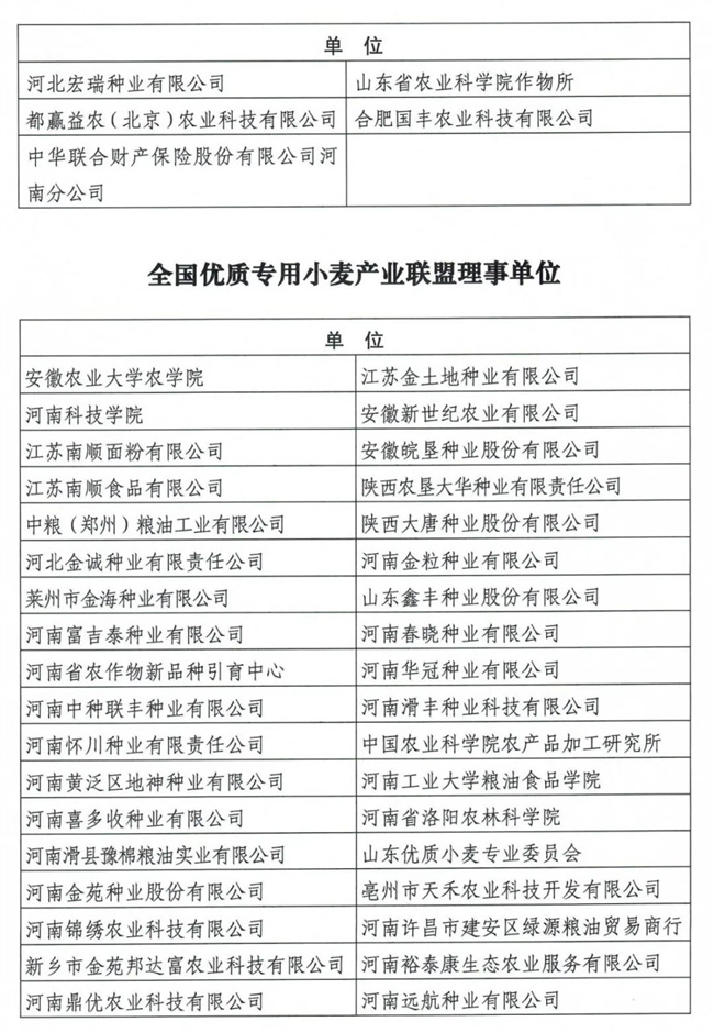 全國優(yōu)質(zhì)專用小麥產(chǎn)業(yè)聯(lián)盟理事單位