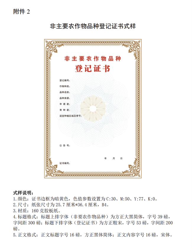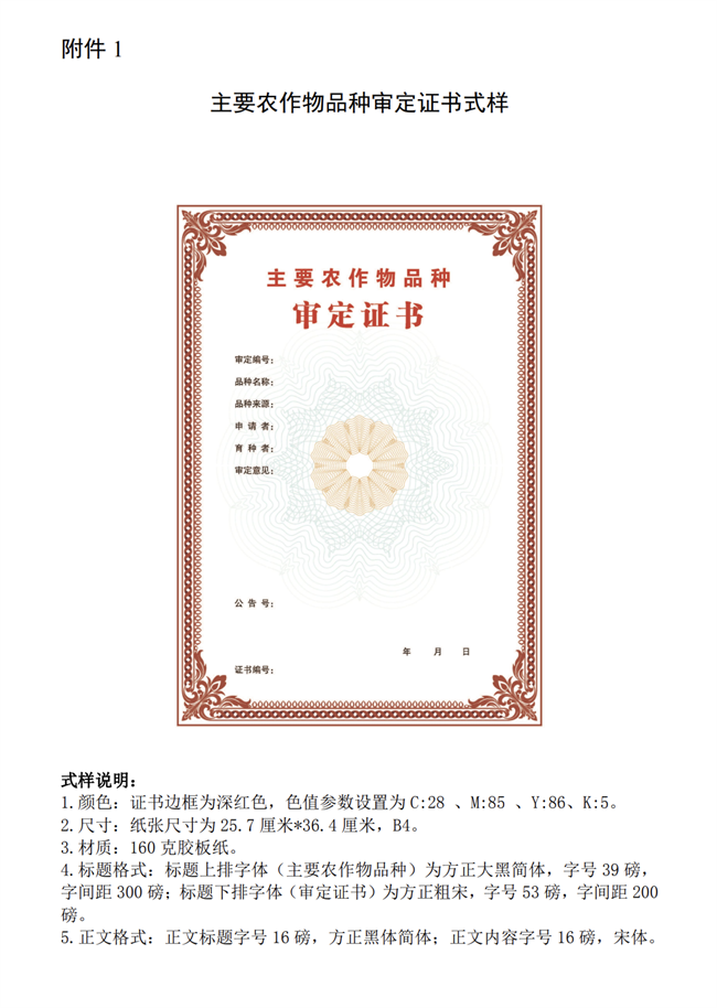附件:1.主要農(nóng)作物品種審定證書式樣