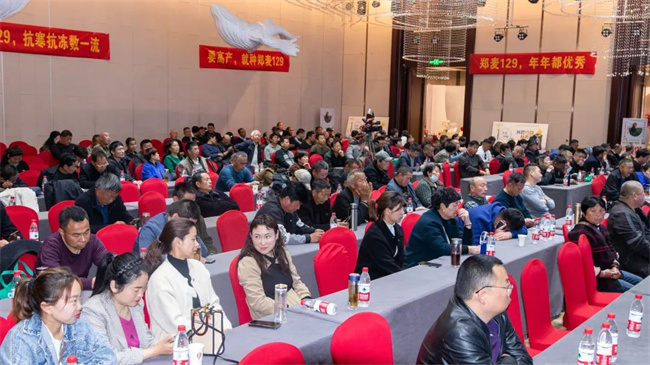 利辛縣經(jīng)銷商王總和徐州優(yōu)秀經(jīng)銷商陳總在交流分享發(fā)言上均表示,鄭麥129,苗期壯,冬季抗寒性好,高抗條銹病和白粉病,抗倒伏能力和抗干熱風能力強,是一個穩(wěn)產(chǎn)性好、適應性廣、綜合抗性突出的優(yōu)秀品種,經(jīng)銷商賣的放心,種植戶種得安心,有信心和能力在2023年銷量翻番!