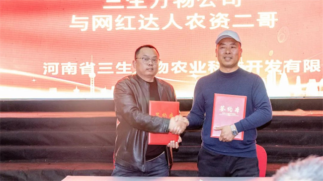 ▲三生萬物農(nóng)業(yè)與網(wǎng)紅達人農(nóng)資二哥簽訂戰(zhàn)略協(xié)議
