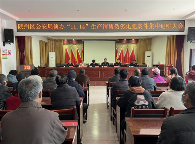 為震懾制售假劣農(nóng)資違法行為,切實(shí)維護(hù)農(nóng)民群眾合法權(quán)益,日前,一場(chǎng)熱鬧非凡的退贓大會(huì)在陜州區(qū)西張村鎮(zhèn)召開(kāi)。該大會(huì)由三門(mén)峽市陜州區(qū)公安局主辦,三門(mén)峽市農(nóng)業(yè)綜合行政執(zhí)法支隊(duì)、陜州區(qū)西張村鎮(zhèn)人民政府等單位參與,以及西張村鎮(zhèn)10個(gè)村村支書(shū)、48名受害人等60余人參加了會(huì)議。工作人員現(xiàn)場(chǎng)將追回的48戶受害農(nóng)戶受騙資金全部返還,受到了群眾的一致好評(píng)。在大會(huì)上,執(zhí)法支隊(duì)負(fù)責(zé)人向群眾講解了“農(nóng)業(yè)綜合行政執(zhí)法隊(duì)伍到底是管什么”,并提醒群眾在購(gòu)買農(nóng)資時(shí),提高防騙意識(shí),謹(jǐn)防上當(dāng)受騙。
