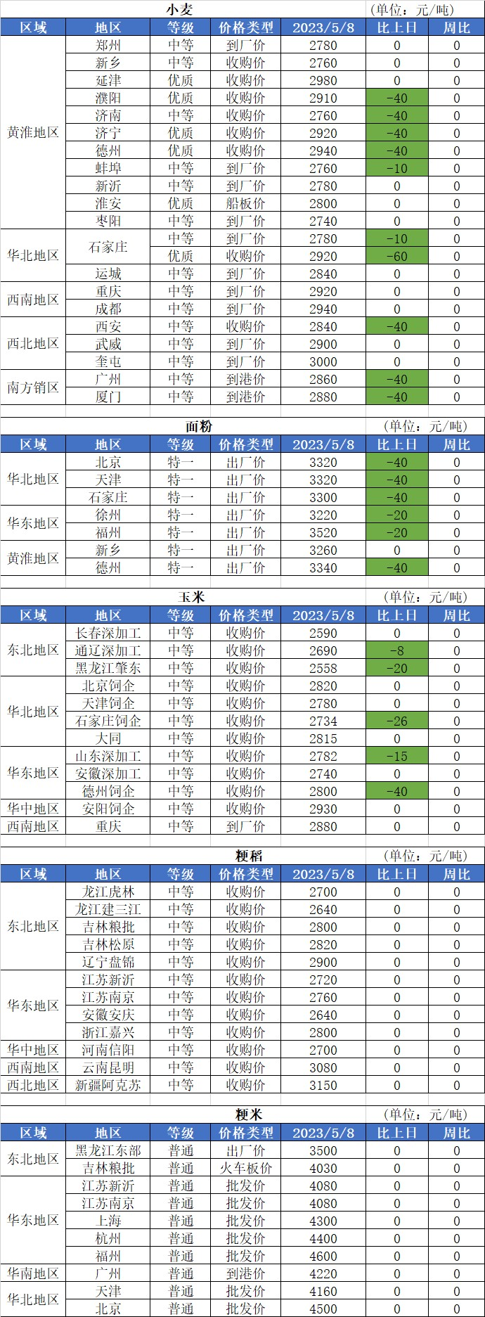 2、5月8日國內(nèi)玉米價(jià)格局部走低:港口地區(qū)、南方銷區(qū)玉米價(jià)格相對(duì)穩(wěn)定,東北地區(qū)玉米價(jià)格穩(wěn)中有跌,黃淮地區(qū)玉米價(jià)格明顯走低,跌幅10-30元/噸。