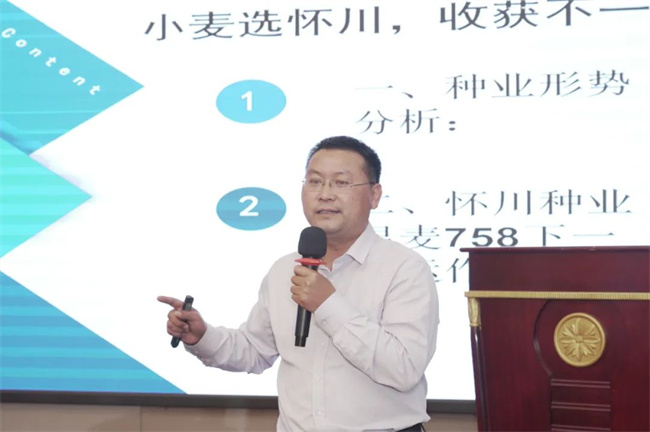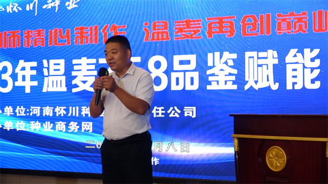懷川種業(yè)副總經(jīng)理梁衛(wèi)紅在致辭中介紹,公司歷經(jīng)二十多年發(fā)展,已成為集小麥、玉米兩大糧食作物為主的科研育種、生產(chǎn)繁育、加工銷售、技術(shù)服務(wù)為一體的育繁推服科技型種業(yè)企業(yè)。在海南、甘肅、焦作建有650余畝育種中心,種業(yè)企業(yè)的發(fā)展,必須以創(chuàng)新為驅(qū)動,雄厚的科研實力,為懷川種業(yè)健康、快速發(fā)展插上騰飛的翅膀。他表示,懷川種業(yè)將以“品種精品、種子精品、質(zhì)量精品”為動力,保質(zhì)保量為客戶提供優(yōu)質(zhì)服務(wù)。相信,與各位合作伙伴精誠合作,攜手共贏,搶抓種業(yè)振興機遇,共創(chuàng)種業(yè)新輝煌!